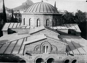 View of the church from south-east. A note at the back of the photograph reads: 'Panagia Lykodemou, Athens', 'View from South-East'. Further annotation in pencil survives.