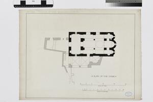 Ground plan. The drawing is entitled in pencil: 'Mistras - Church of the Evangelistria'. It is labelled in ink: 'A Plan of the Church'. It is numbered in pencil (no 1) in upper right-hand corner.