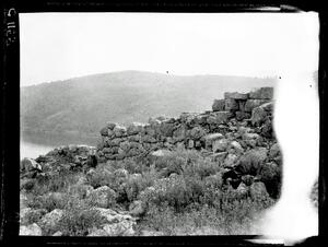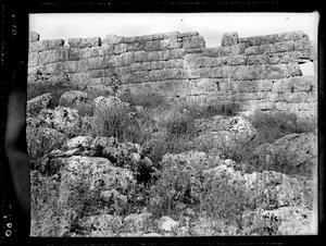 The original description in the SPHS register reads: "Mr. Atchley's numbering: 210. Acarnania, Oeniadae, Wall and tower of acropolis from W".