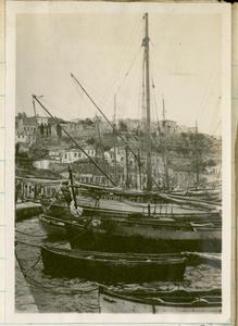 Part of a collection of images from Hasluck's travels to Samos, Patmos, Leros, Didyma, Miletus, Priene, Scala Nuova in 1912. The original description in the SPHS register reads: "Samos: Tigani, harbour at".