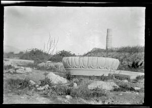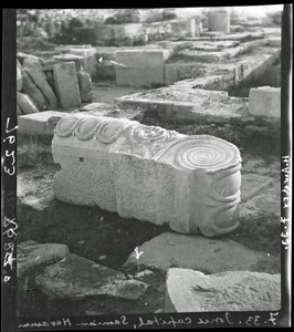 Part of a group of images donated by the Argonaut Camera Club, taken on excursions and cruises in Greece and Asia Minor. The original description in the SPHS register reads: "Ionic capital. Samian Heraeium".