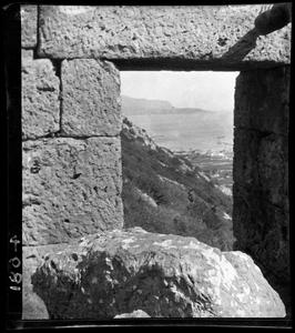 The original description in the SPHS register reads: "Samos: view of harbour of Polykrates through windows in tower on Acropolis".