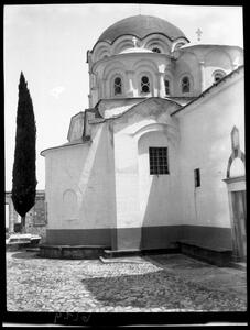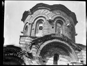 An image from a group of images taken by F.W. Hasluck when investigated the 'Latin Monuments' on the island of Chios from 1907 to 1909. Original description in the SPHS register reads: "Chios: Nea Moni, detail of church".