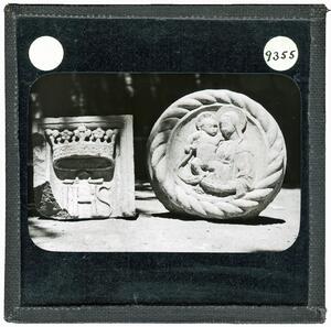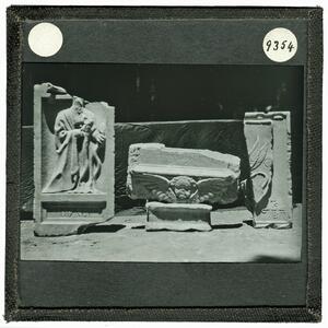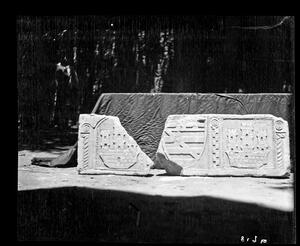 An image from a group of images taken by F.W. Hasluck when investigated the 'Latin Monuments' on the island of Chios from 1907 to 1909. Original description in the SPHS register reads: "Chios: Museum, fragments of Genoese sculpture".