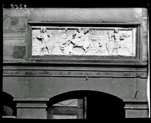 An image from a group of images taken by F.W. Hasluck when investigated the 'Latin Monuments' on the island of Chios from 1907 to 1909. Original description in the SPHS register reads: "Chios (Chora) Museum, another lintel relief of St. George BSA xvi".