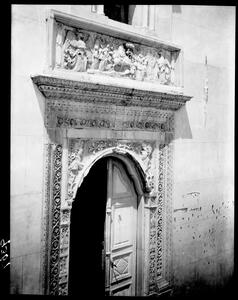 An image from a group of images taken by F.W. Hasluck when investigated the 'Latin Monuments' on the island of Chios from 1907 to 1909. Original description in the SPHS register reads: "Chios (Chalkios) Genoese doorway in village church, detail of relief; Triumphal entrance".