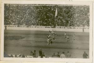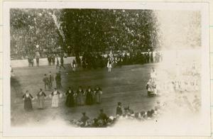 Photograph of a display of folk dancing in the [Panathenaic] stadium, Athens