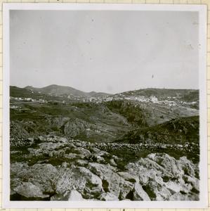 Part of a collection of images from Wace and Dawkins' travels to the Dodecanese and the Cyclades between 1906 and 1907, primarily to collect textiles. The original description in the SPHS register reads: "Kimolos: general view".