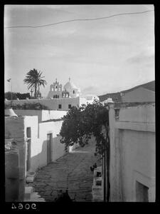 The original description in the SPHS register reads: "Paros: Parockía, church of Hekatontapyliané, W view from village".