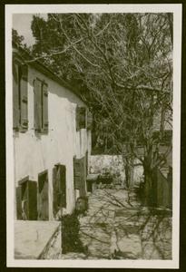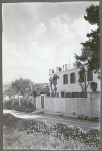 [PEN/7/2/6/434], Photograph of the wall and front (partially visible through trees) of “The New Taverna” at British School at Knossos, seen from across the road, Crete, Apr-Jul 1935