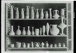 Part of a collection of images from Dawkins' visit to Cyprus in 1908. The original description in the SPHS register reads: "Vases, Late Mycenaean from Cyprus Museum".