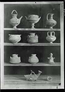 Part of a collection of images from Dawkins' visit to Cyprus in 1908. The original description in the SPHS register reads: "Terra Cottas".