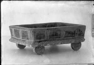 Part of a group of images from the British School at Athens excavations at Palaikastro, Crete in the 1902-1905. The original description in the SPHS negative register reads: "Palaikastro: stone fruit stand". No negative is listed in the SPHS register.