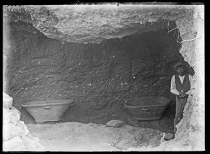 Part of a group of images from the British School at Athens excavations at Palaikastro, Crete in the 1902-1905. The original description in the SPHS negative register reads: "Palaikastro: larnax burials".