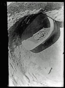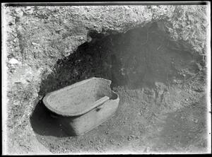 Part of a group of images from the British School at Athens excavations at Palaikastro, Crete in the 1902-1905. The original description in the SPHS negative register reads: "Palaikastro: larnax".