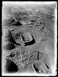 Part of a group of images from the British School at Athens excavations at Palaikastro, Crete in the 1902-1905. The original description in the SPHS negative register reads: "Palaikastro: Larnakes burials".