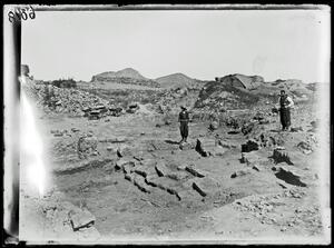 Part of a group of images from the British School at Athens excavations at Palaikastro, Crete in the 1902-1905. The original description in the SPHS negative register reads: "Palaikastro: excavations, main street, crossroad".