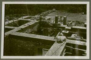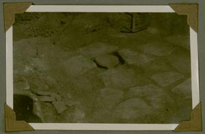 Found during 1930 excavations. View from above, with altar piece placed on ground.