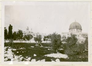 View of the city with the Dome of the Rock. The photograph is annotated in pencil at the back.