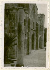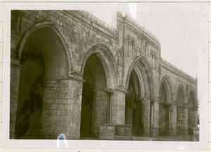 Façade of a mosque (Al Aqsa Mosque?) at the Rock. The photograph is annotated in pencil at the back.