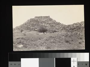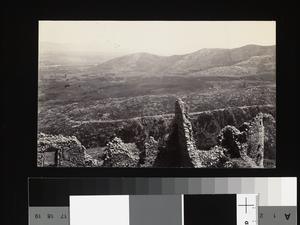 View of landscape from the walls. Further annotation in pencil survives at the back of the photograph. Donated by Leaf. W?