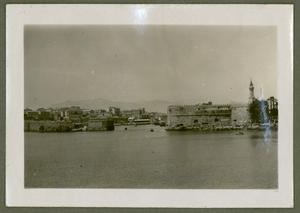 Part of a collection of images from Halliday's travels around Crete following the excavations at Kamares Cave in 1913. The original description in the SPHS register reads: "Candia, Crete, harbour".
