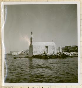 Part of a collection of images from Wace and Dawkins' travels to the Dodecanese and the Cyclades between 1906 and 1907, primarily to collect textiles. The original description in the SPHS register reads: "Naxos: R. C. French cathedral, door of".