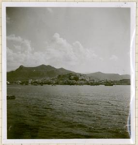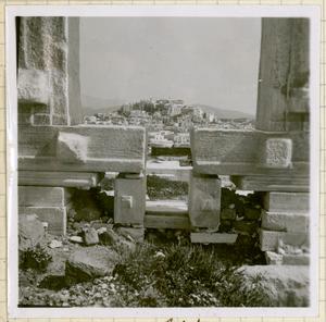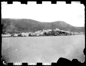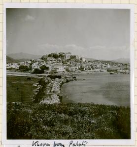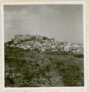 Annotated in ink on the back, 'View of Castro with medieval wall, Naxos. Catholic cathedral just visible on the ...Orthodox cathedral in the foreground'