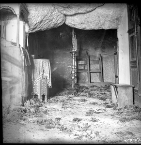 Interior of the Cave of the Apocalypse, Patmos which is about halfway up the path that leads to the monastic complex of Hagios Ioannis o Theologos. This print is copy of a Hellenic Society photograph (H.S. 5557) as noted in pencil on the back of the photo along with the name Rev. T.A. Moxon who is probably the donor but not necessarily the creator. See SPHS Image Collection for more details